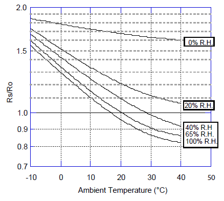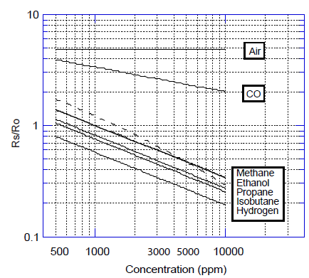 縱坐標表示傳感器電阻比 Rs/Ro,Rs與Ro的定義如下: