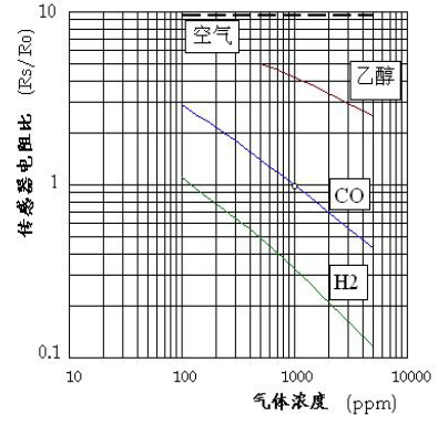 縱坐標(biāo)以傳感器電阻比(Rs/Ro)表示,Rs,Ro 的定義如下: