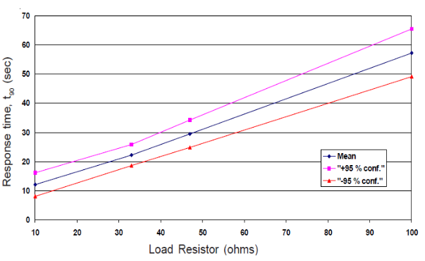 正如所有 Alphasense 的毒氣傳感器一樣,增加負載電阻值會延長反應時間,但也能降低噪聲以獲得更好的分辨率 。