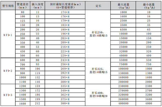 五、MFI系列插入式質(zhì)量流量計(jì)產(chǎn)品參數(shù)