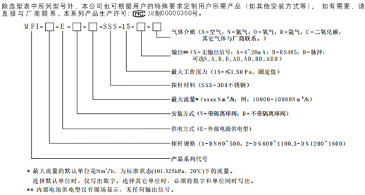 四、MFI系列插入式質(zhì)量流量計(jì)產(chǎn)品型號(hào)