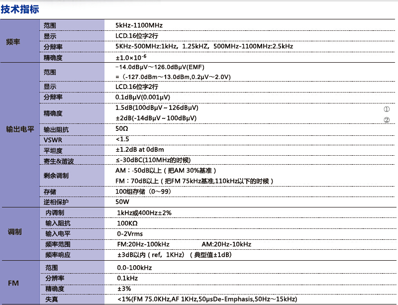 三、射頻信號(hào)發(fā)生器AT8010D技術(shù)指標(biāo)