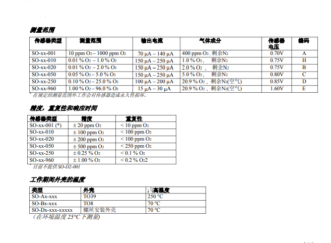 測量范圍:Type SO-D2-001-A300C 10ppm - 1000ppm O2