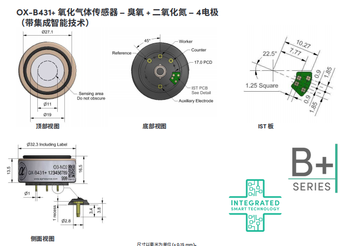英國Alphasense 高分辨率臭氧傳感器(O3傳感器) OX-B431 OX-B431+  IST板數(shù)據(jù):