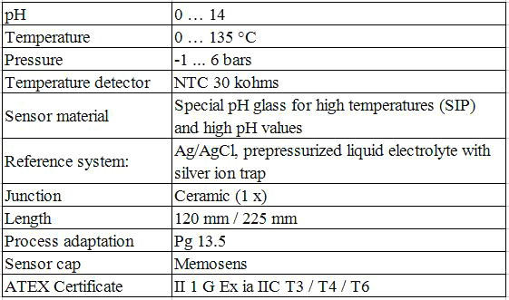 pH傳感器SE 555技術(shù)參數(shù)