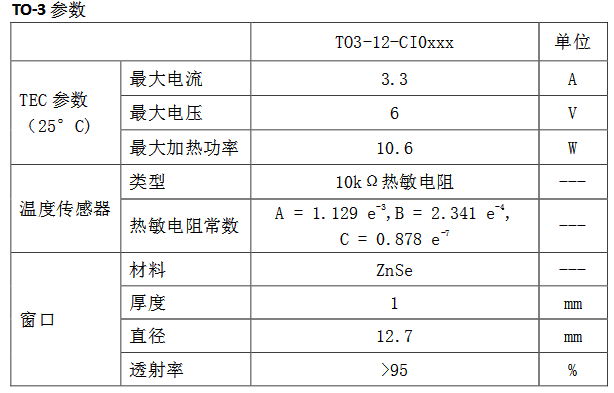 三、(量子級(jí)聯(lián)激光器)CO2氣體傳感器TO3-CIA009 TO-3 參數(shù)