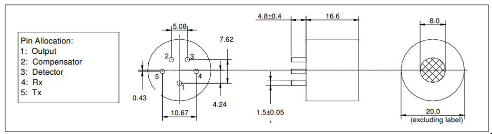 此外,通過串口連接可以讀取輸出值和訪問內(nèi)部配置。通信連接點(diǎn) 3 系的 Prime2 是焊盤,5 系的 Prime2 是管腳。內(nèi)部的集成電路可以實(shí)現(xiàn)的功能如驅(qū)動(dòng)光器件,提取檢測(cè)信號(hào),把信號(hào)強(qiáng)度轉(zhuǎn)化為濃度,進(jìn)行溫度補(bǔ)償和量化輸出值等。