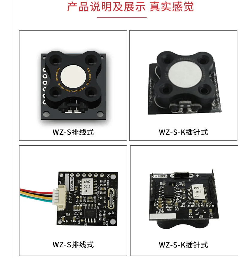 甲醛傳感器 甲醛檢測(cè)模組 WZ- S型 排線式和插針式的接線方式區(qū)別: