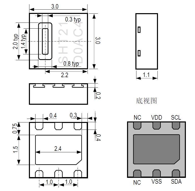 五、瑞士Sensirion 數(shù)字溫濕度傳感器SHT20外形尺寸