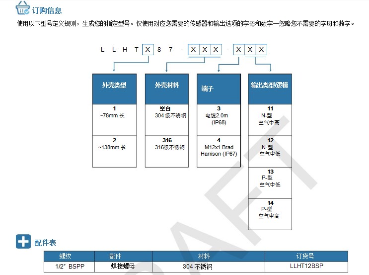 英國SST液位開關(guān) 液位傳感器 LLHT系列 選型: