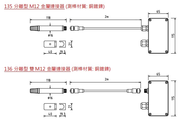 臺(tái)灣Seria 高濕度 溫濕度傳感器 CAEL-HH 尺寸:
