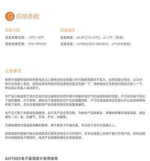 AHT985是一款用于室內(nèi)的溫濕度計(jì),裝有精密的物理感應(yīng)部件,能準(zhǔn)確測(cè)量附近的溫濕度,提醒我們調(diào)整合適的環(huán)境溫濕度,保護(hù)財(cái)產(chǎn)安全,保障身體健康等