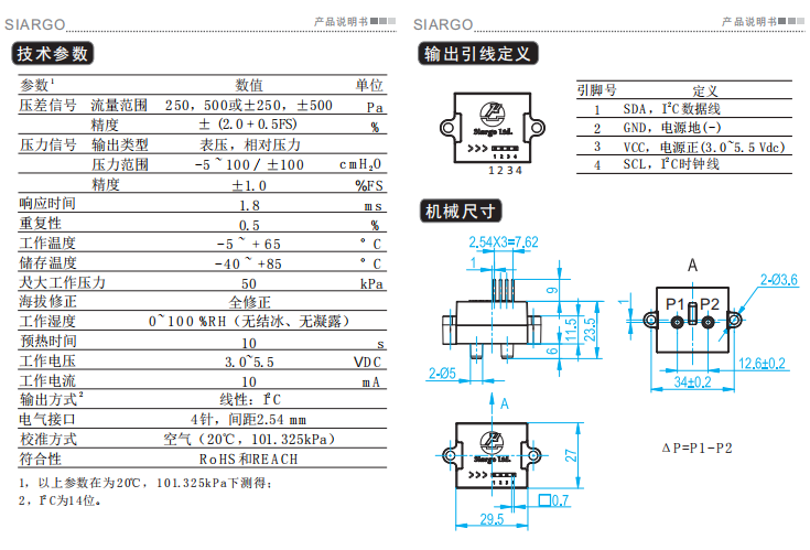 美國(guó)Siargo 數(shù)字式雙壓力傳感器 FSP2000系列參數(shù):