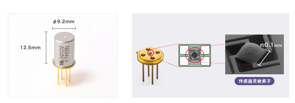 通過融合日本Figaro超過50年的半導(dǎo)體式氣體傳感器技術(shù)積累與高超的MEMS(Micro Electro Mechanical Systems)技術(shù),外形尺寸降至直徑9.2mm、高度12.5mm*,與日本Figaro既有的甲烷傳感器相比,功耗成功降低了90%以上。