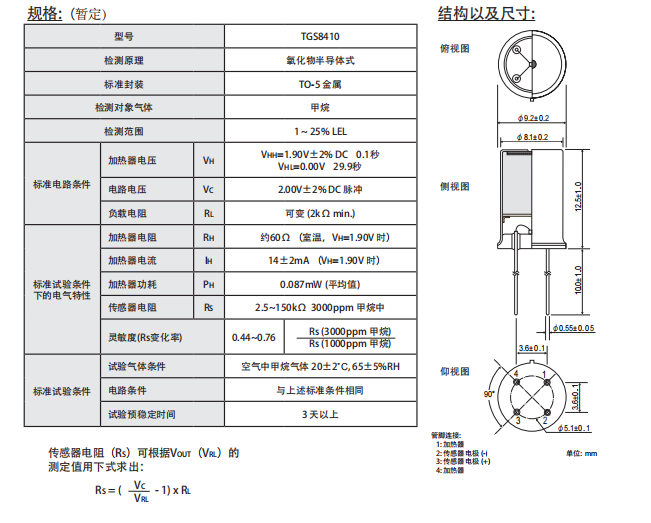 五、日本Figaro 甲烷氣體傳感器 MEMS 低功耗 高靈敏度 TGS8410 參數(shù):