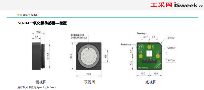 英國Alphasense NO 一氧化氮傳感器 電化學(xué) 微型 NO-H4 參數(shù):