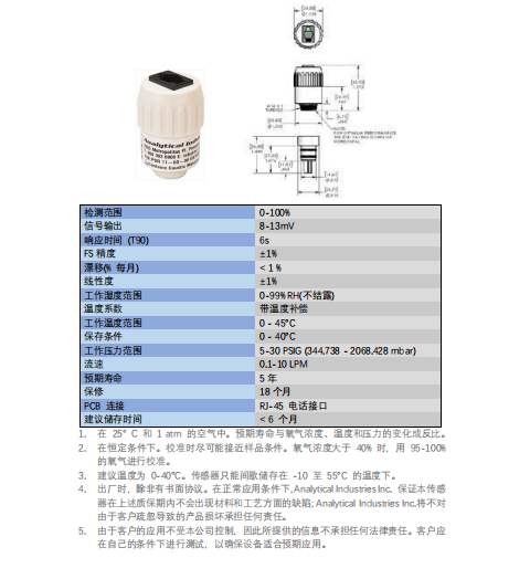 美國AII O2 氧氣傳感器 PSR-11-60-08 參數(shù):