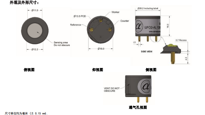 英國Alphasense O2 長壽命無鉛氧氣傳感器 LFO2-AL 參數: