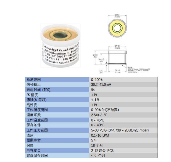 美國AII O2 氧氣傳感器 PSR-11-915 參數(shù):
