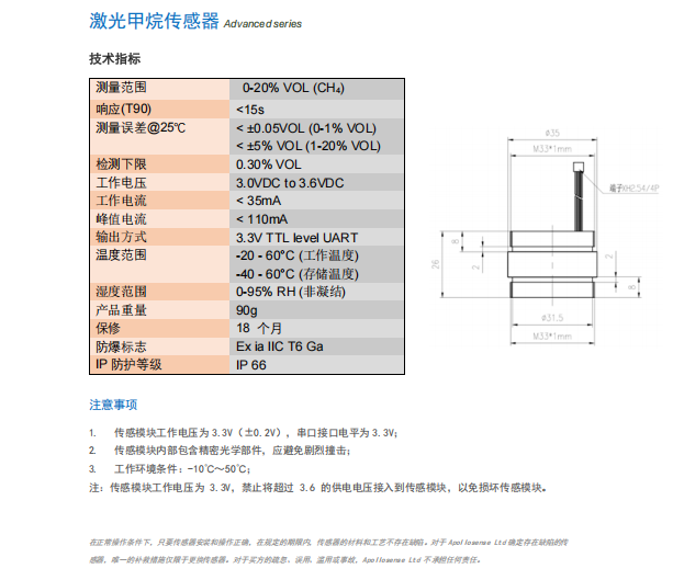 激光甲烷傳感器 AG-6-CH4-2822-A  參數(shù):