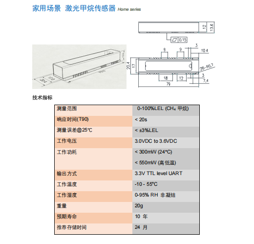 激光甲烷傳感器 AG-6-CH4-H8012-L  參數(shù):