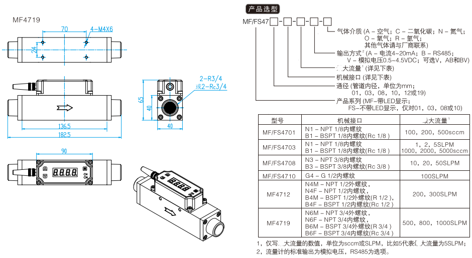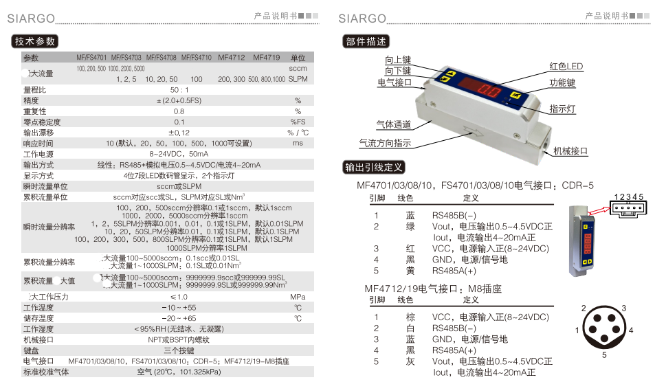 美國Siargo 氣體質(zhì)量流量計 MEMS流量傳感芯片 LED顯示屏 MF4700系列 參數(shù):