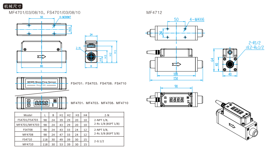 MF/FS4700系列氣體質(zhì)量流量計是均采用本公司自主研發(fā)的微機電系統(tǒng)(MEMS)流量傳感芯片來制作,適用于各類清潔、干燥氣體。