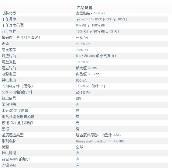 五、HIH6000系列數(shù)字式濕度/溫度傳感器產品規(guī)格