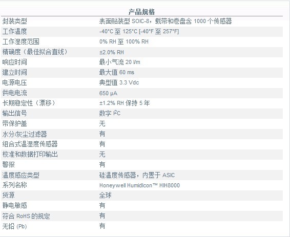 一、數(shù)字式濕度/溫度傳感器HIH8000系列產(chǎn)品描述