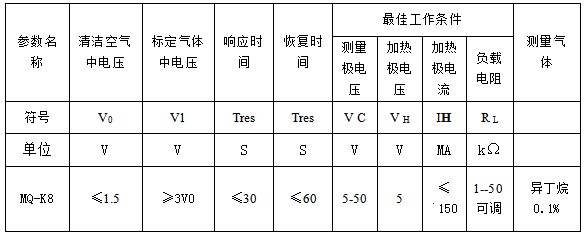 三、可燃?xì)鉄熿F傳感器MQ-K2規(guī)格型號: